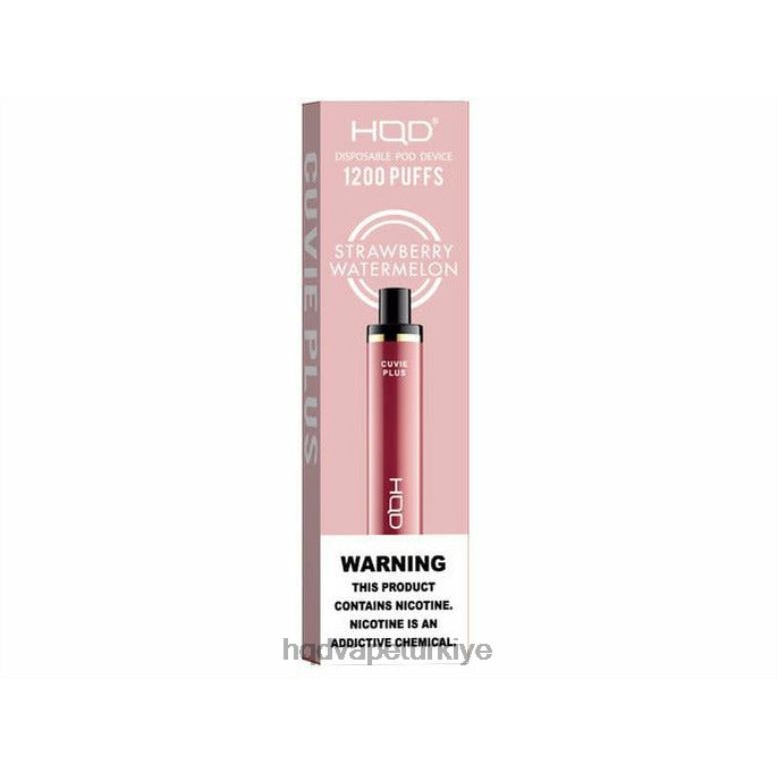 hqd cuvie plus çilekli karpuz tek kullanımlık vape, taze çilek ve sulu karpuz aromasının muhteşem karışımıyla canlandırıcı bir tat sunar.